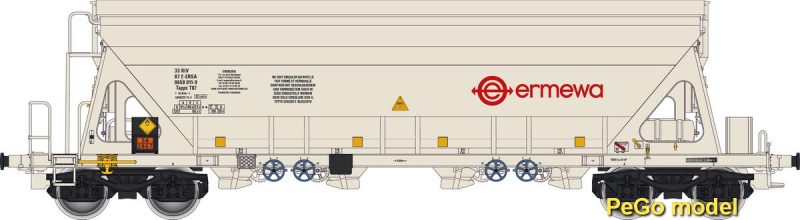 Hungarian model railway manufacturer AlbertModell just announced a new series of hopper wagons for transporting salt, grain, sugar etc. in scale H0. In France these wagons are known as tpye T90 and nowadays have code Tapps or Tanpps.